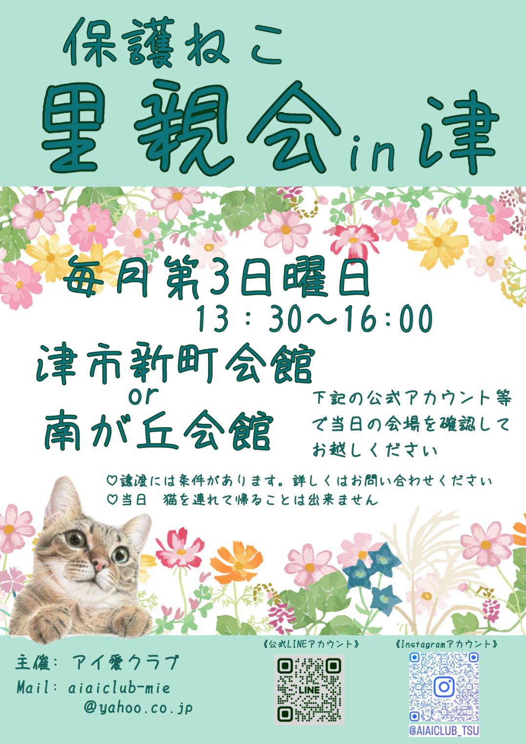 津市で開催される里親会や里親募集中の猫ちゃん達の情報を定期的に発信しています。